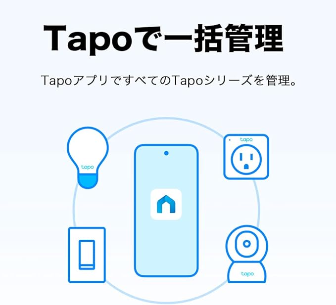 【どこからでも操作】 スマホで外出先からの操作。スマートフォン専用アプリ「Tapo」でアプリ上から直感的な設定/操作が可能。