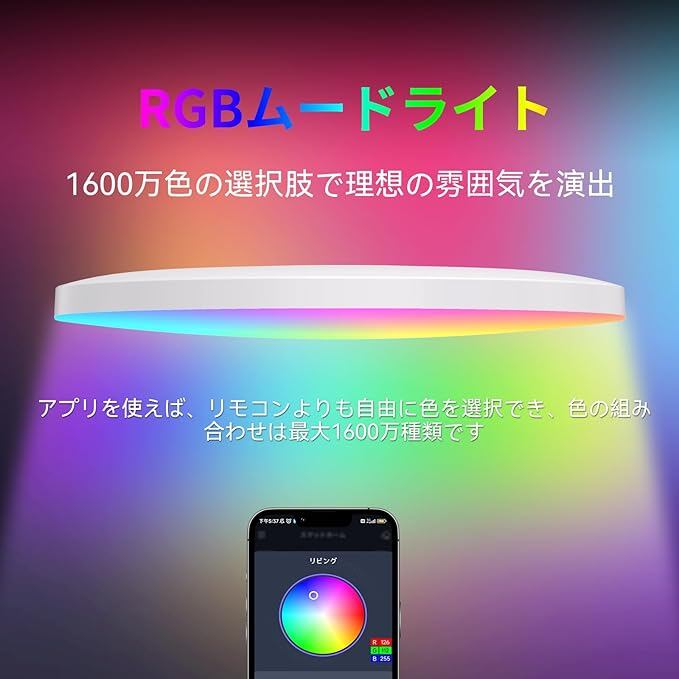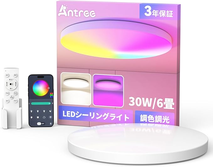 Antree LEDシーリングライト RGB 6畳 3600lm 調光調色 常夜灯 led 照明 天井 おしゃれ 蛍光灯 リモコン付き スマホAPP操作 6畳 和室/洋室/寝室/玄関/リビング/キッチン音楽ダンスルーム/ゲームルーム適用
