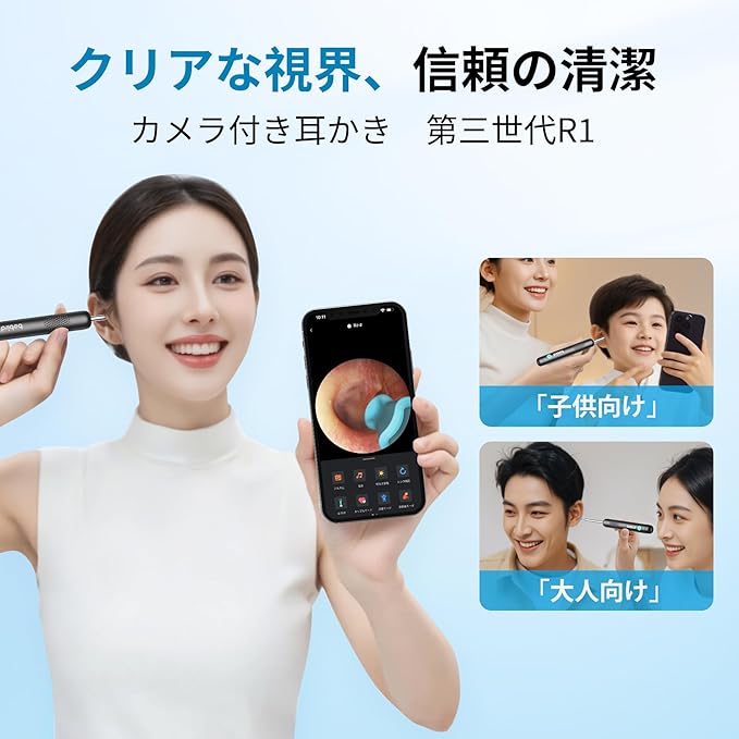 【Bebird 第3世代R1九月新登場】カメラ付き耳かき|1000万画素|画質強化|3.1mm極細レンズ|明るさ調節可能LEDライト付き|ピンセット付属|耳口鼻観察カバー付属|点薬補助具付き|Bebird専用アプリ|IP67防水|耳垢取り 耳掃除 イヤースコープ 子供 大人
