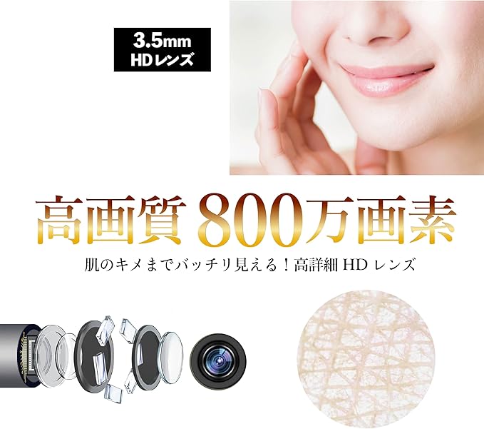 【高画質】直径3.5mmの800万画素のHDカメラ搭載