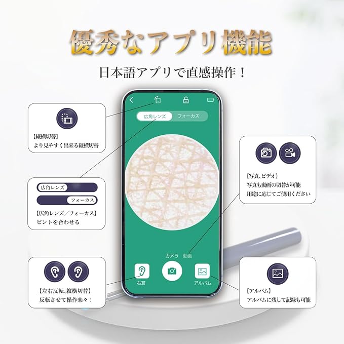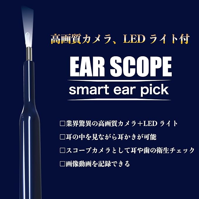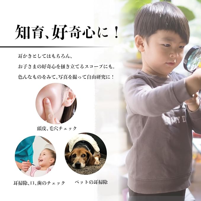 【LEDライト搭載】6つのLEDライトでしっかり照らします。耳だけでなく、口の中や隙間に落とした小さな物など、普段見えない気になるところも見ることができます。