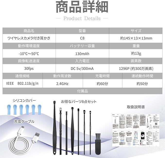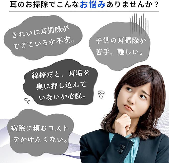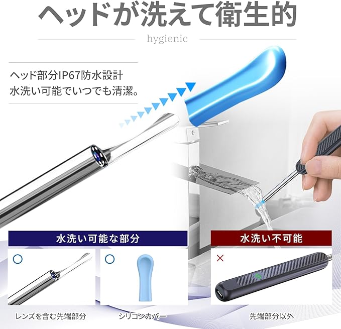 ✅【最先端技術による安全設計】内径3.3mmの超小型レンズを搭載したカメラは小さなお子様の耳にも対応できるサイズで、先端部は折れにくいステンレス素材、さらに耳に優しいシリコンカバー6点付きで安心してご使用いただけます。