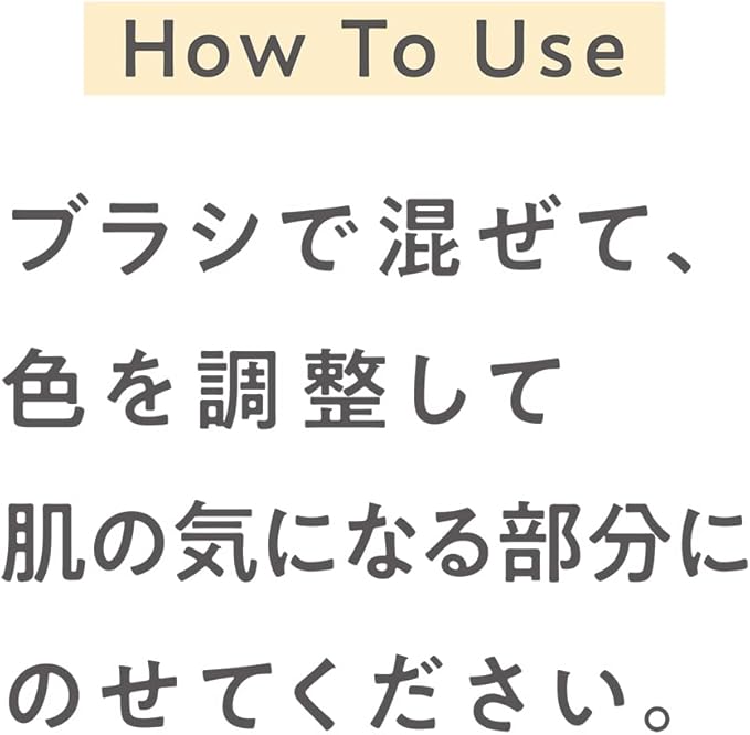 適量をブラシに取り、気になる部分になじませます。パウダーファンデーションをご使用の場合はファンデーションの前に、クリーム・リキッドファンデーションをご使用の場合はファンデーションの後にお使いください。 続きを見る