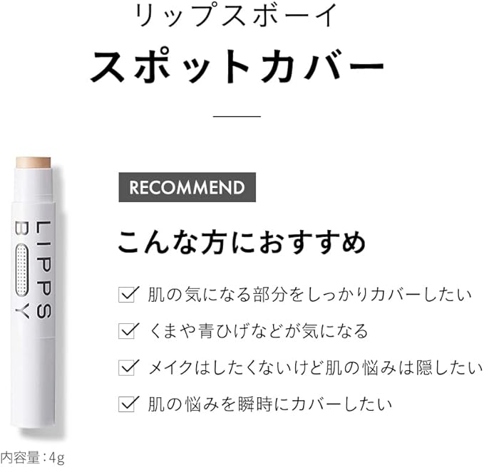 リップスボーイ スポットカバー コンシーラー (自然な肌色, 4g) メンズコスメ ニキビ跡 青髭 肌の赤み 隠し 馴染みやすい LIPPS BOY