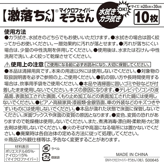 激落ちくんのマイクロファイバー雑巾10枚入りです