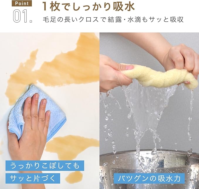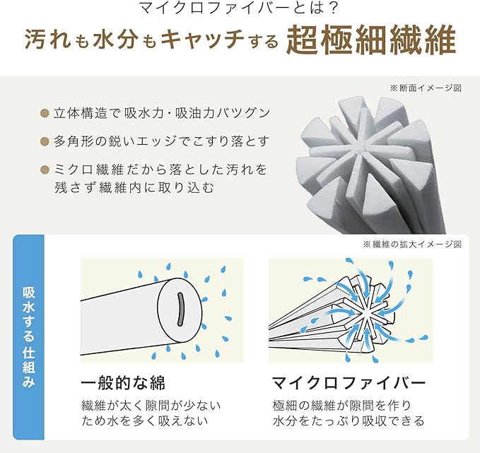 毛足の長いふわふわのマイクロファイバーがホコリ・水分・油分をしっかりキャッチします。