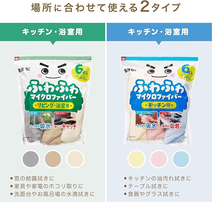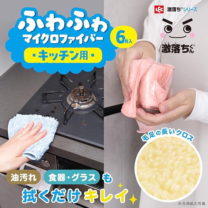 レック 激落ちくん ふわふわ マイクロファイバークロス (6枚入・約25 25cm) キッチンおそうじ用/油汚れ吸着・しっかり吸水