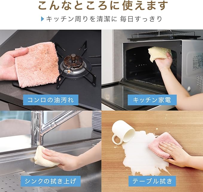テーブル・シンクまわりの拭き上げやコンロの油汚れのふき取りに最適です。