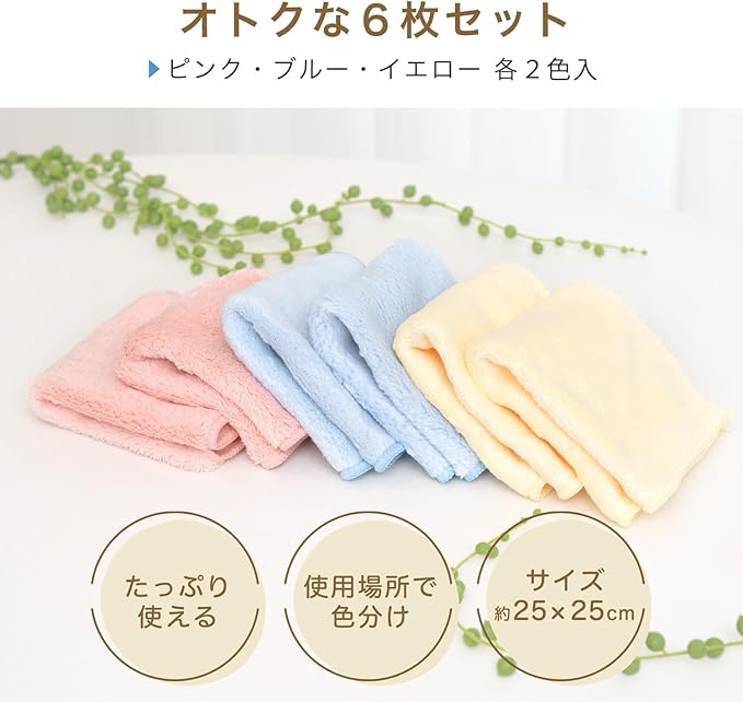 3色 2枚の計6枚入りで使用場所ごとに色分けして使い分けが可能です。