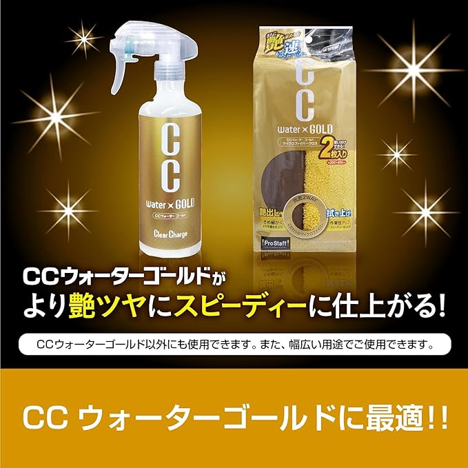CCウォーターゴールドがより艶ツヤにスピーディーに仕上がる、2WAYマイクロファイバークロスが使いやすいコンパクトサイズになりました。