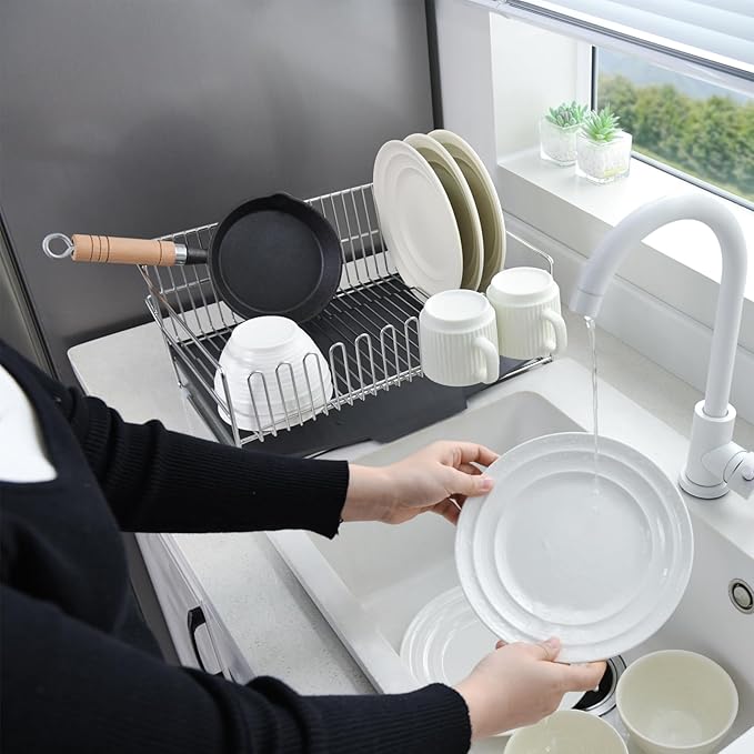 水切りラック シンク上 食器 水切り キッチンラック 水切りかご 304ステンレス 水切りラック 防錆、傷つけにくいです (シルバー, 40.5cm)