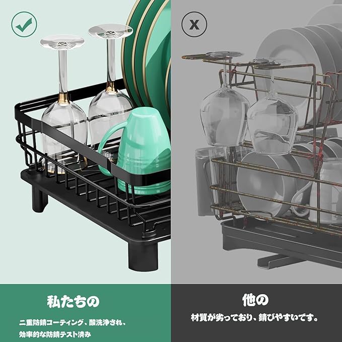 【プレミアム品質と耐久性】高品質の素材で作られた食器ラックは耐久性に優れています。日常の使用に耐え、錆びにくく、長持ちします。