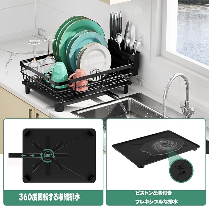 【 効率的な排水システム】食器ラックのボトムトレイには、回転する水ガイドバーを備えた排水設計を採用。これにより、水流を簡単に調節し、水たまりを防ぎながら効率的に排水できます。