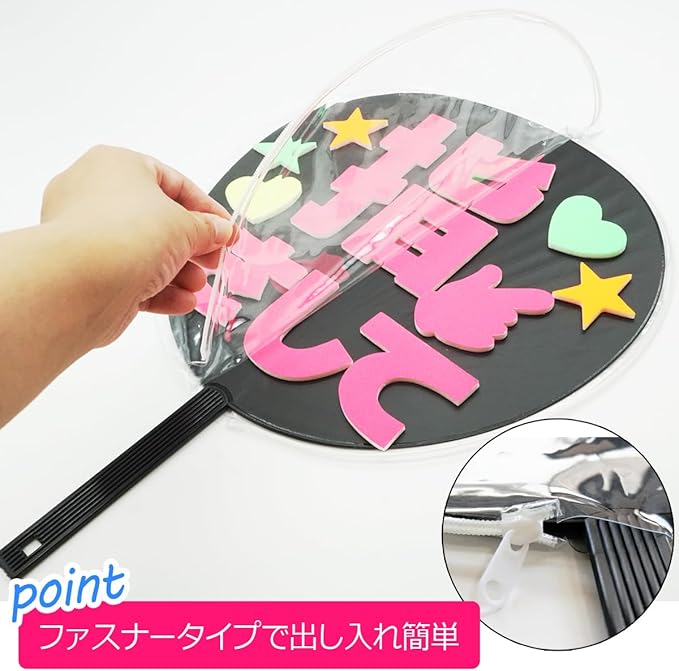 【 ファンサ うちわカバー 】 ジャニーズ公式うちわサイズ にも対応の うちわケース 厚さは5mmまで対応。 便利な横ファスナー付で、応援うちわ の出し入れも簡単。 フック穴も付いているので、お家でうちわを壁に掛けて飾ることもできます! 透明ビニールカバーが、中身がすぐに確認でき、 うちわ を汚れから守ります。 自分でデコったものが取れにくいので自作のコンサートうちわが長持ちするウチワカバー コンサート ライブへの持ち運びに便利