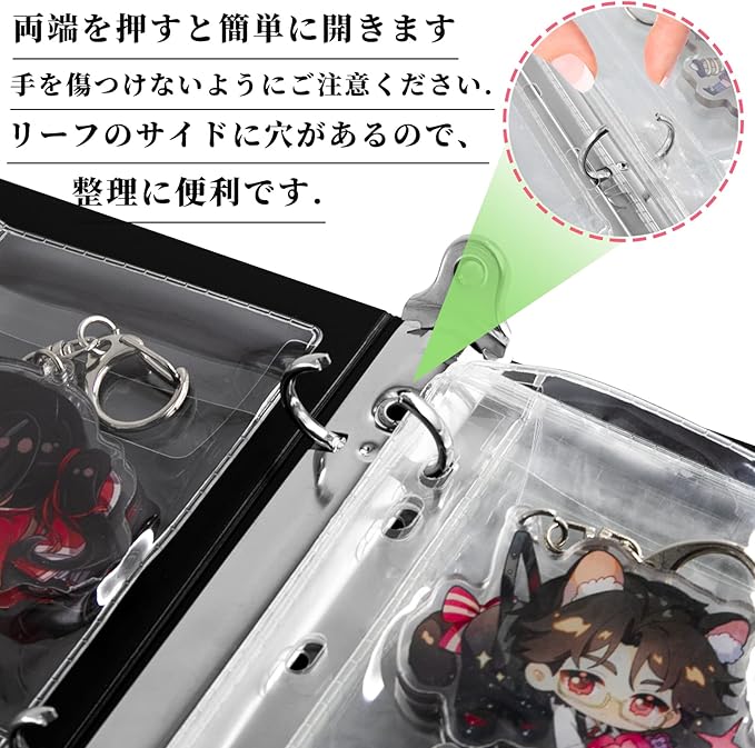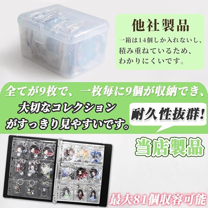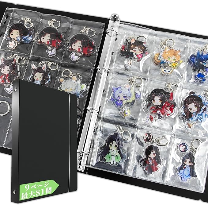 大容量で大切な キーホルダー ジをしっかり守る!大容量、ポケット数:全てが9枚で、一枚毎に9個が収納でき、大切なコレクションがすっきり見やすいです。