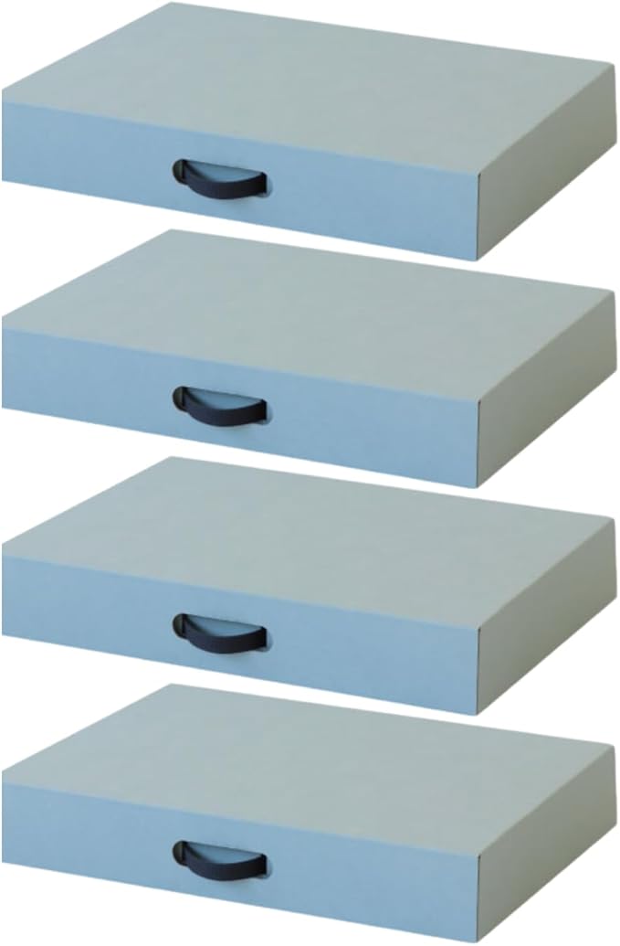 東洋ケース CRAFT+ メモリアル収納ボックス 4個組 W58.5 D44 H10cm 作品 収納 日本製 組立品 作品収納 メモリアルボックス ダンボール 収納ボックス 収納ケース (ブルーグレー4P)
