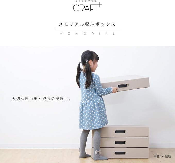 お得な4個組! 大切な思い出と成長の記録を収納できるメモリアルボックスです。子どもたちの幼稚園、保育園、小学校で作ってきた、たくさんのいろいろな作品を収納する事ができます。