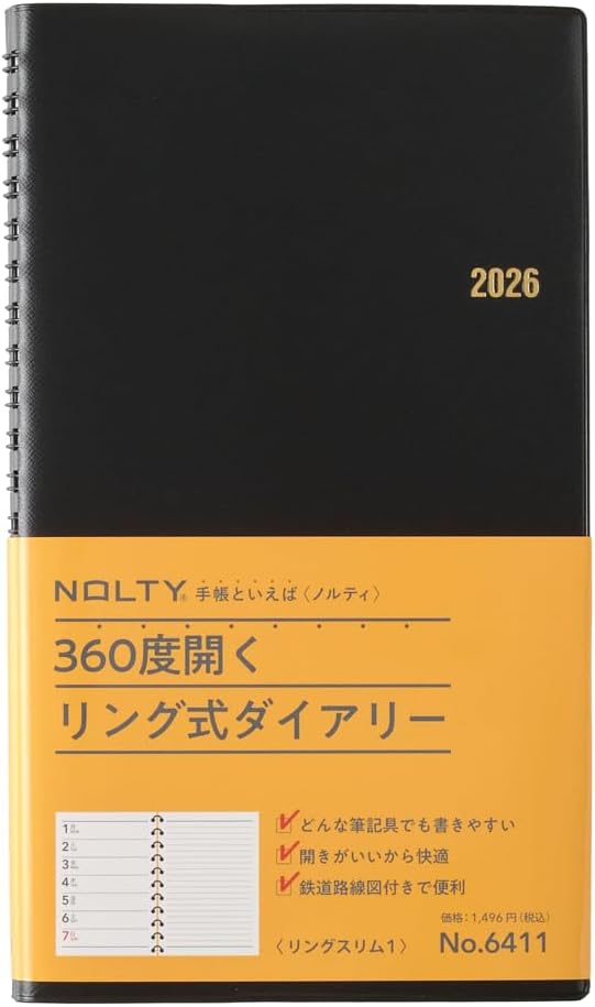 能率 NOLTY 手帳 2026年 ウィークリー リング スリム 黒 6411 (2026年 1月始まり)