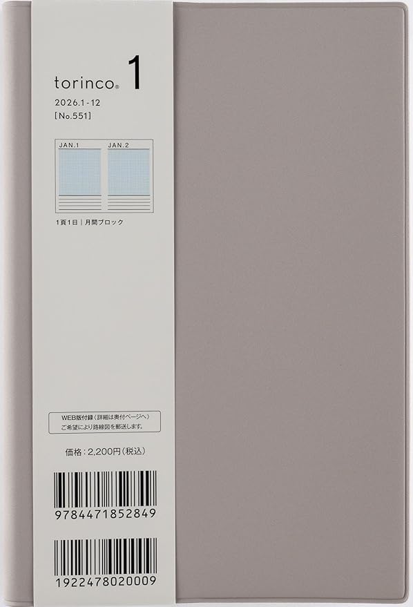 551 torinco1 手帳 高橋書店 2026年版 ソフトグレー デイリー B6変型判