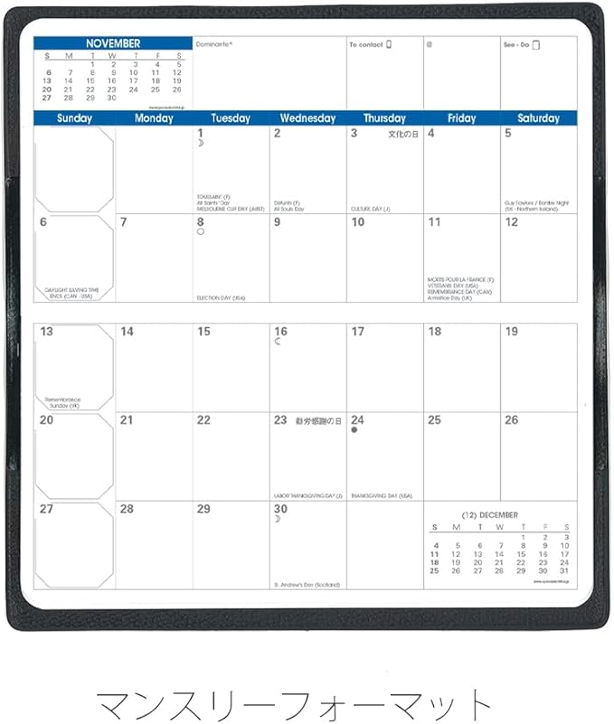 国内のマンスリータイプでは最も人気の薄型マンスリー型の手帳です。