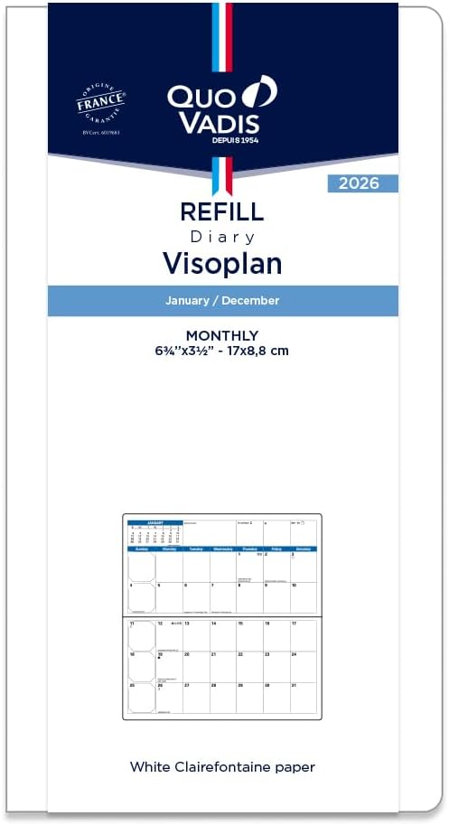 クオバディス 【2026年版】 手帳 ダイアリー『ビソプラン/レフィル』(月間ブロック・1月始まり・スリムサイズ 17 8.8cm) QUOVADIS qv367rech-pe