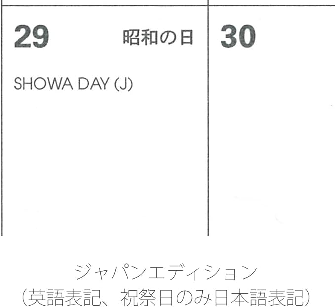 ●ジャパンエディション(英語表記、祝祭日のみ日本語)