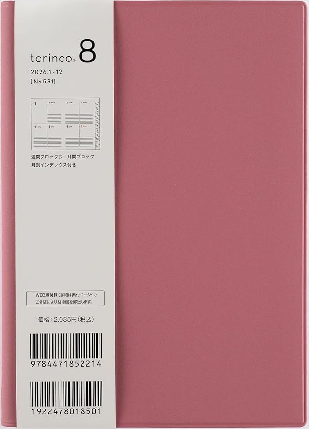 531 torinco8 手帳 高橋書店 2026年版 ローズウッド ウィークリー B6判