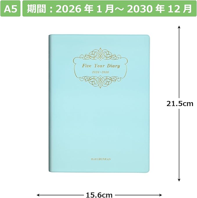 博文館 日記 2026年 A5 5年連用ダイアリー ソフト版 ホワイトブルー No.148 (2026年 1月始まり)