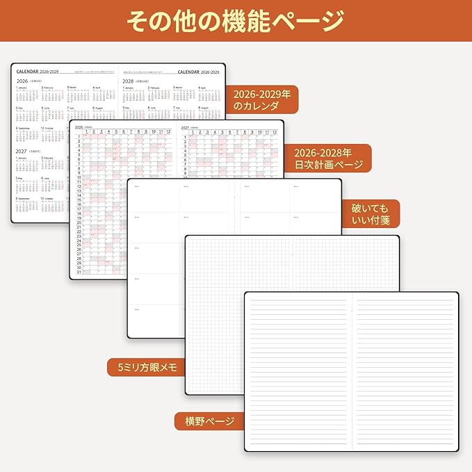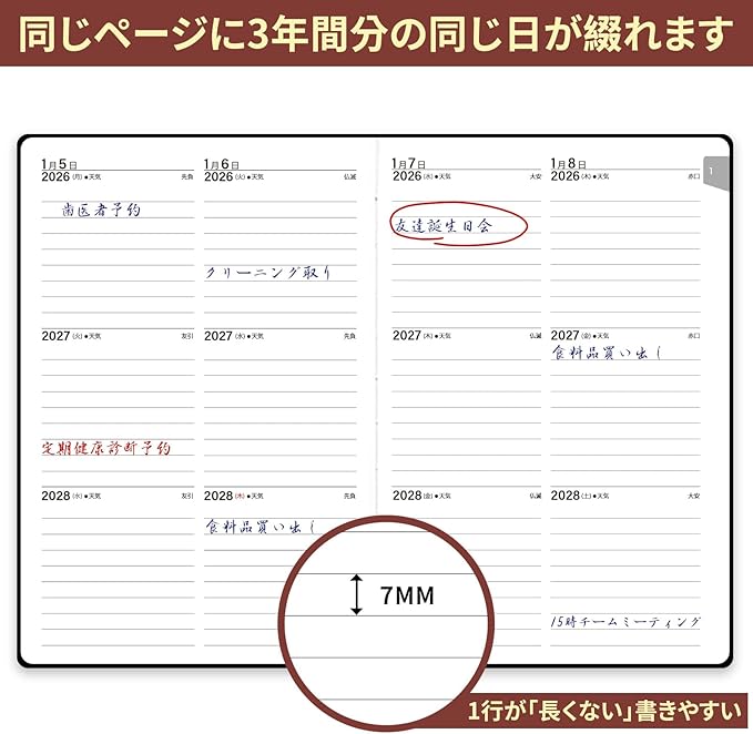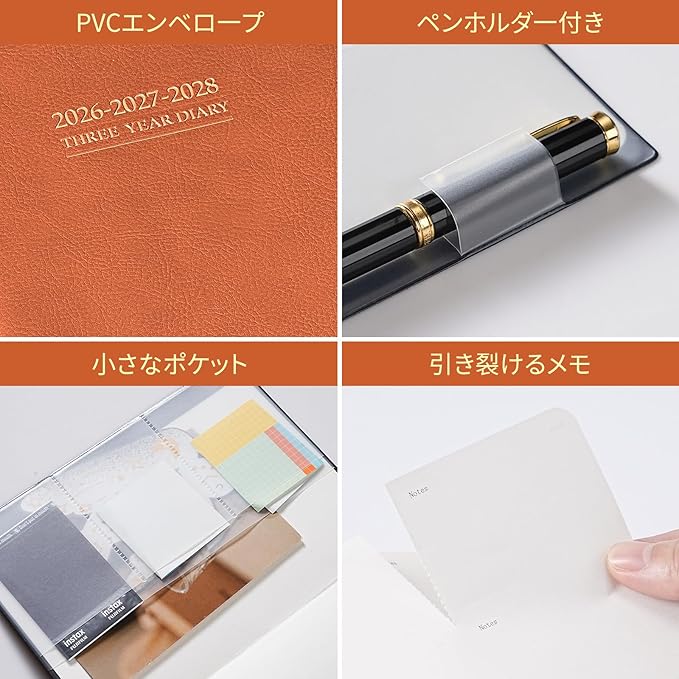 【2026-2028年三年手帳】この2026手帳は、2026年1月から2028年12月までの3年間が1冊にまとめられています。長期計画や成長記録に最適で、将来の計画をより明確かつ効率的に立てることができます。