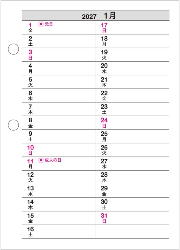 コレクト 手帳 2026 スケジュール帳 卓上日記 替紙 I型W型共通 D-101 2026年 1月始まり