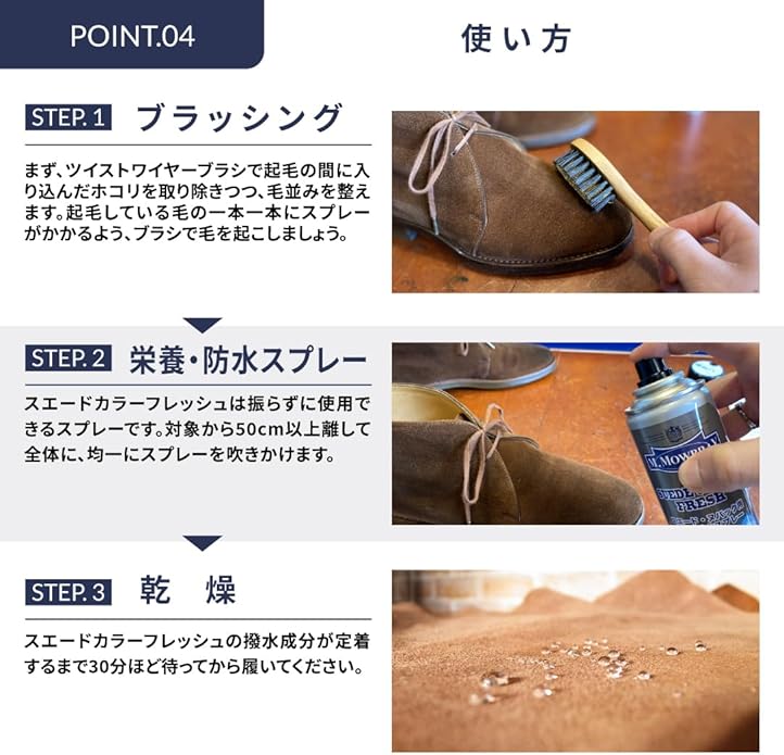 スエード用 無色 栄養 防水 防汚スプレー スエードカラーフレッシュ 起毛皮革 ヌバック/ムートンブーツ/スエードスニーカー対応 色褪せ防止/発色復活