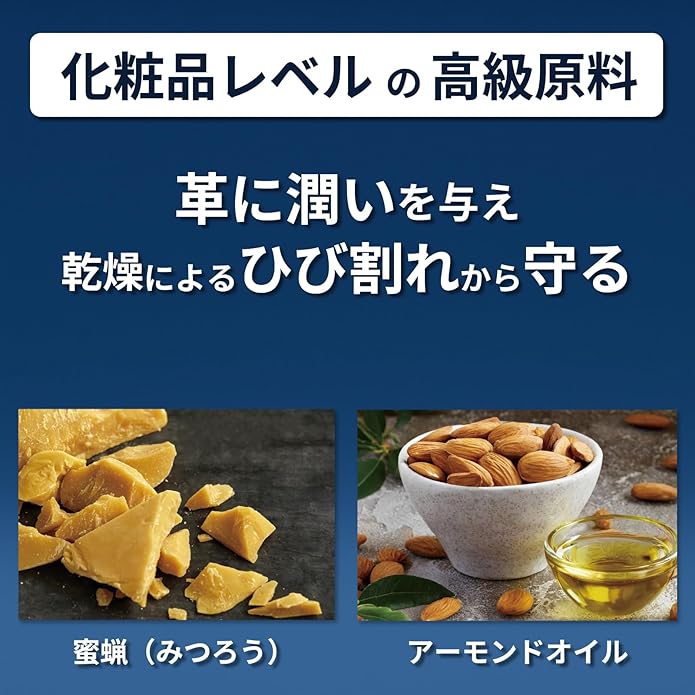 【しっかり潤い、光沢を取り戻す】保湿・栄養効果が非常に高く、革の劣化を防ぎ柔軟性を保ちます。コンディションを整えることにより、革本来の美しいツヤを取り戻します。