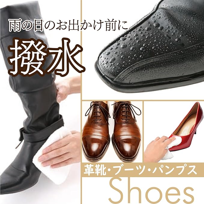 ●革の達人は撥水性が際立ちる。日ごろのお手入れや雨天のお出かけ前に