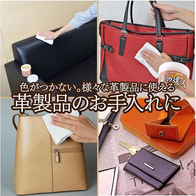●革製品全般、合成皮革の汚れ落とし・保護・艶だしに。但し、スエード、バックスキン、セーム革等、起毛素材のものには適していない