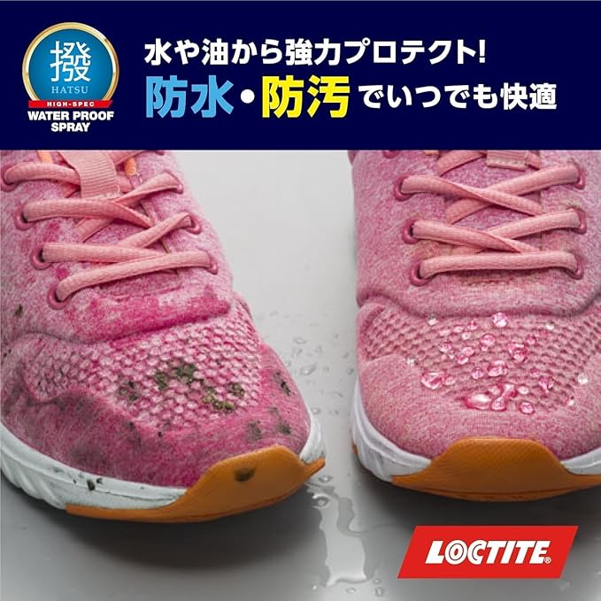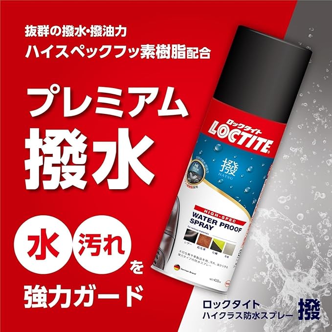LOCTITE(ロックタイト) ハイクラス防水スプレー[撥] 420ml - 革靴、スニーカー、バッグ、雨具、衣類などのお手入れにハイスペックのフッ素樹脂でワンランク上の強力な撥水性を発揮します。