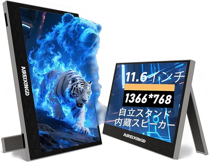 モバイルモニター 11.6インチ 1366x768P HD ポータブルモニター 非光沢面 サブモニター 小型モニター 薄型 軽量 内蔵独立スタンド モバイルモニター vesa USB Type-C ミニHDMI PS4/XBOX/Switch/PC/Macなど対応