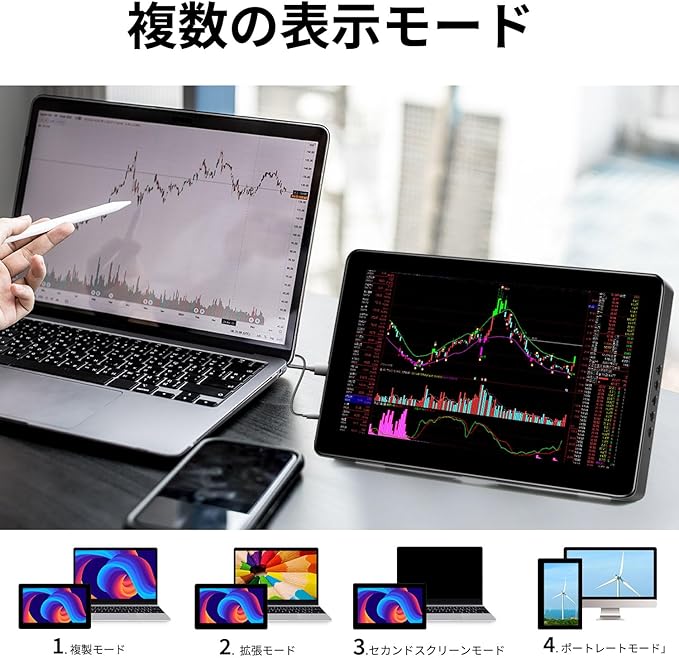 5. 折り畳みスタンド付き多画面活用 - 30 ~90 の角度調整可能なスタンドを内蔵。会議での「画面複製モード」、作業効率化の「拡張モード」など、超小型サブディスプレイとしてシーンに応じた活用が可能です。