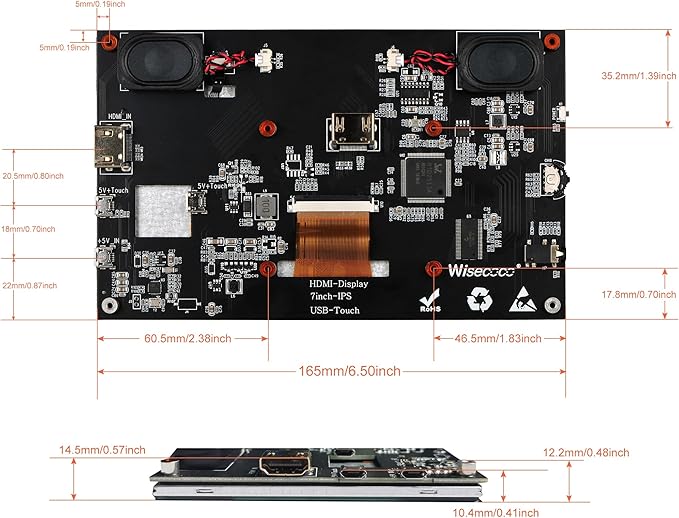 【使いやすい】Raspberry Piモニターとしてプラグアンドプレイでドライバーのインストールは必要ありません。このwisecocoモバイルモニターは軽量(0.23kg)でサイズが7インチとなっており、旅行の時も携帯しやすい。