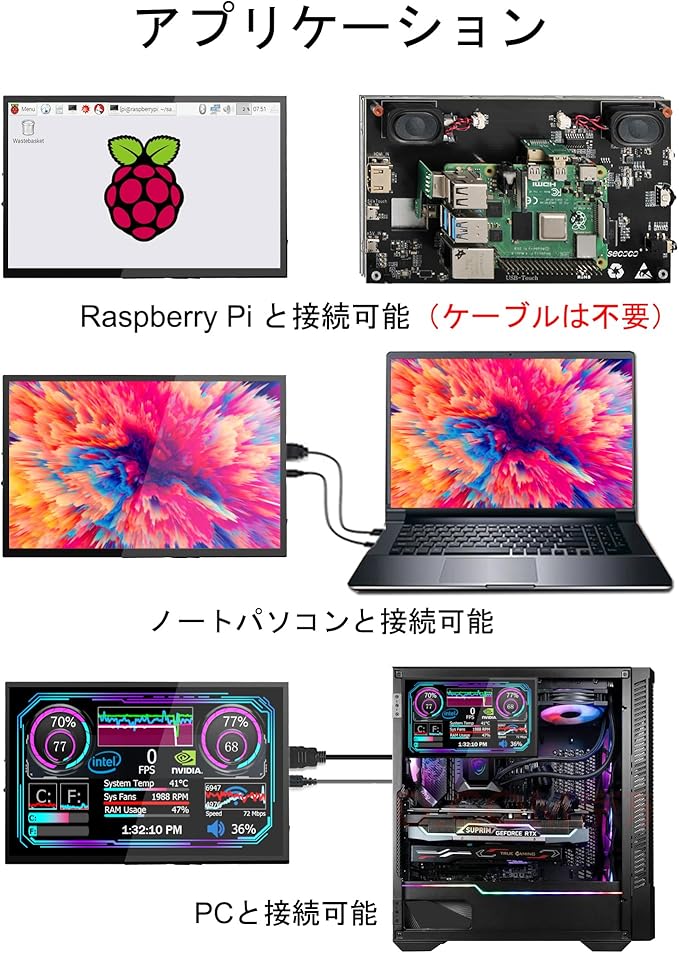 【幅広い互換性】この小型ディスプレイはRaspberry Pi 4/3/2/1/3B+/BB/Banana Pi./Debian/Ubuntu及び Kodi などをサポートします。Windows 7/8/10 PC、Microsoft、メディアプレーヤー、FireTV sticなどにも適しています。