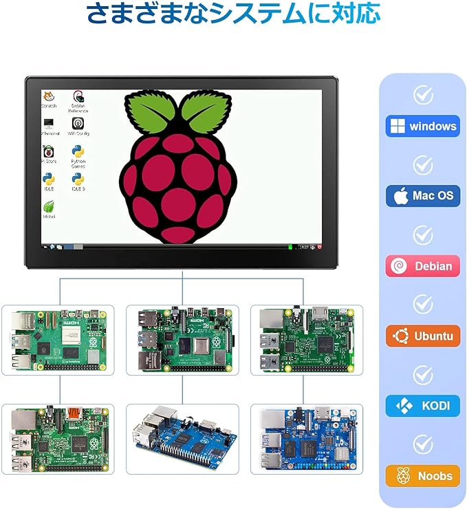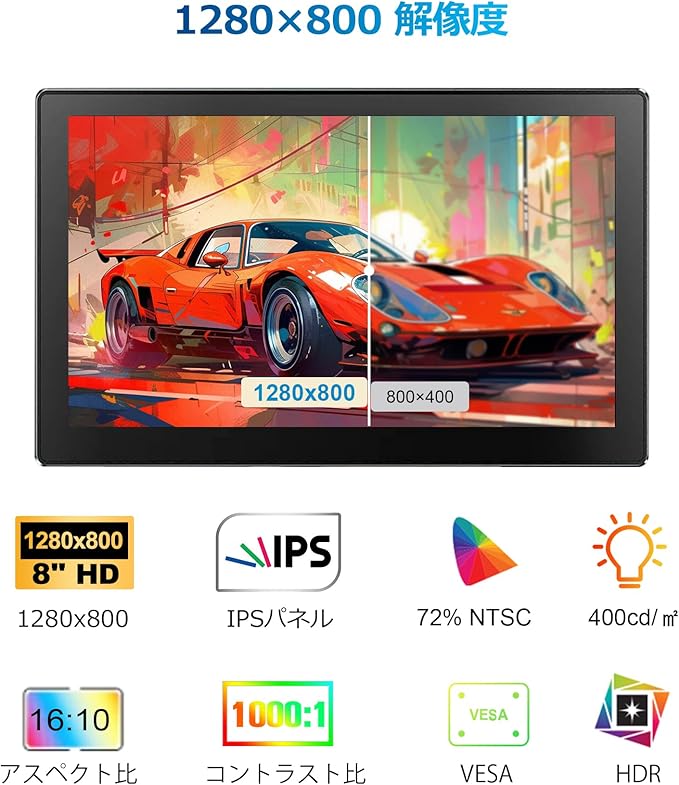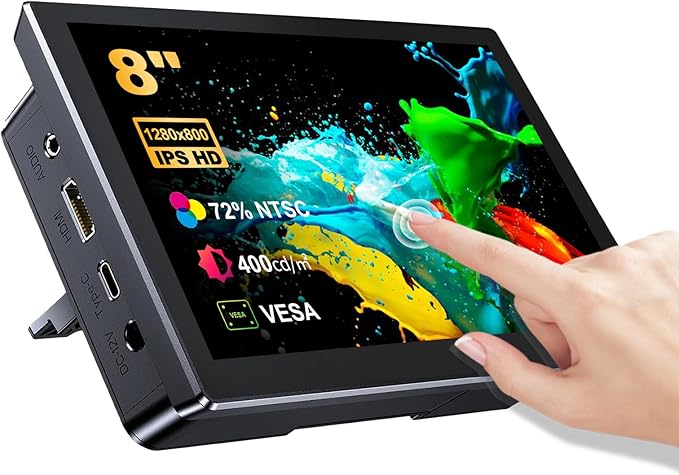 8 インチ タッチ スクリーン モニター、HD 1280 800 IPS LCD スクリーン内蔵スピーカー 72%NTSC モニター、R PI 4B/3B+/3B/2/1B+/Zero Windows 10/8/7 Ban Pi と互換性あり