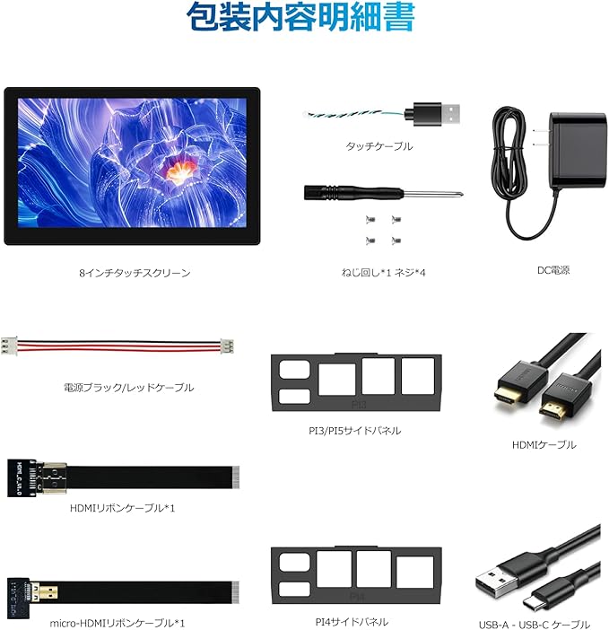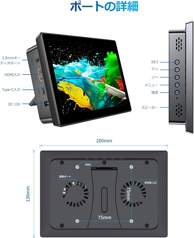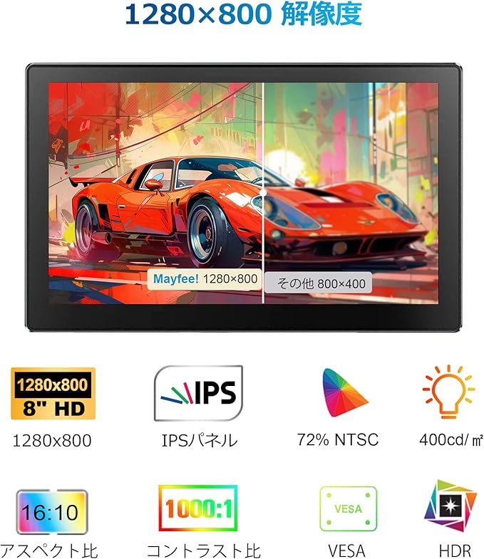 優れた画質: この8インチタッチスクリーンモニターは、1280X800解像度の美しいHD画面を備え、画質はクリアで鮮明です。高度なIPS光沢スクリーンは178 の全視野角をサポートし、印象的な視覚体験をもたらします。