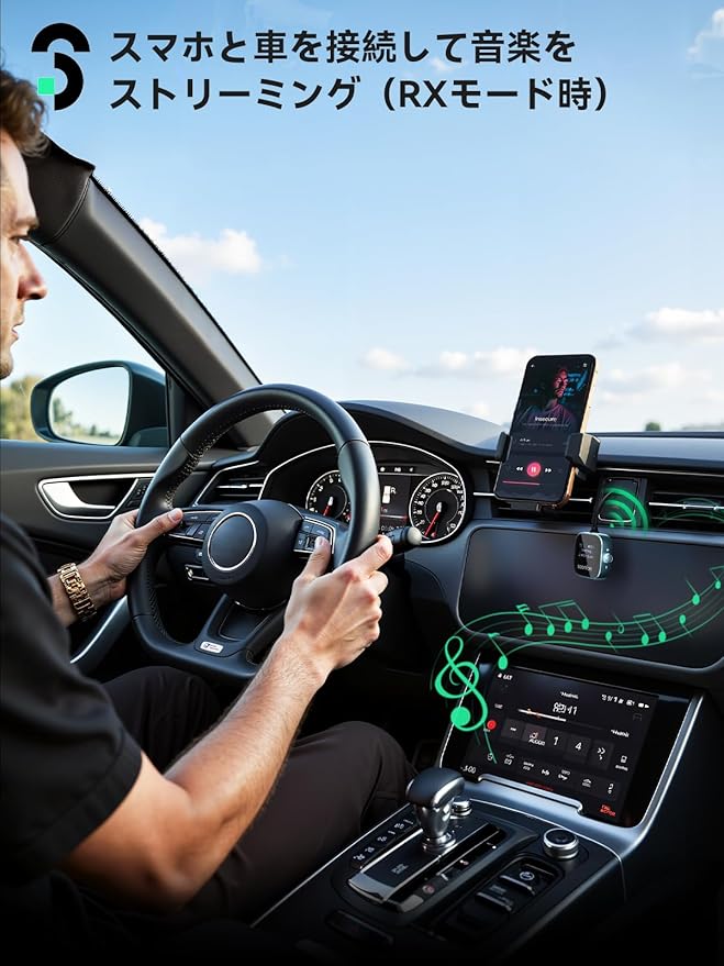 【2台同時接続と自動再接続】: この トランスミッターを使用すると、TX モードでも RX モードでも、2 つの Bluetooth デバイスを同時に接続できます。Bluetooth 送信機 モード:2台のBluetooth機器に同時に音声出力。Bluetooth 受信機 モード : 2台のBluetooth機器を同時接続可能(この際、音声の出力はどちらか一つのみとなります)。また、電源を入れると、以前にペアリングしたデバイスに自動的に再接続することもできます。