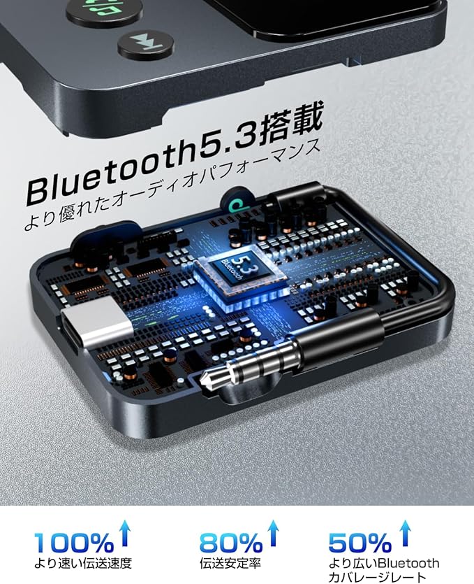 【最新のBluetooth 5.3技術】EWiN Bluetooth トランスミッターは、音楽リスニング体験を新たな次元へと導きます。最新のBluetooth 5.3技術を搭載し、より高速で安定した伝送を実現しています。