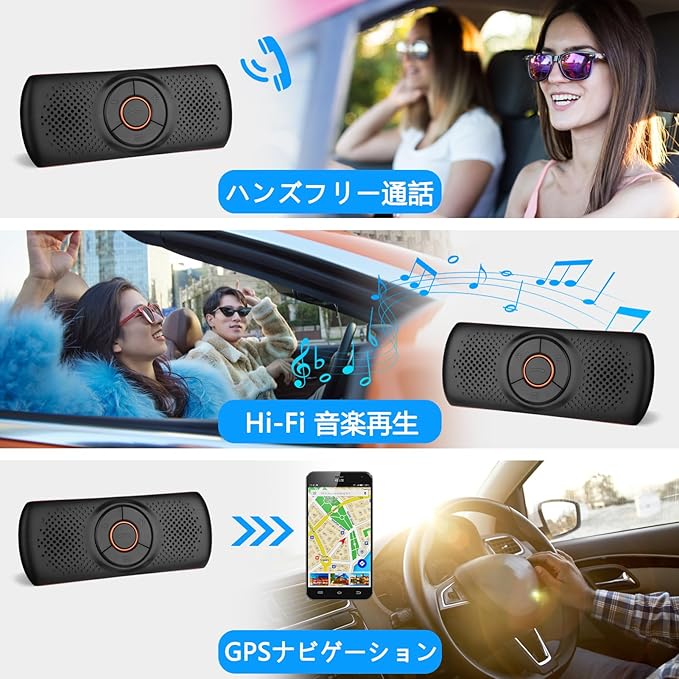 【2台の携帯を同時に接続】この車載 ワイヤレススピーカーはBluetooth V4.2+EDRを搭載し。10m内の有効なスマホのBluetoothを検索できます。動作中に2台の携帯を同時に接続できます。音楽(生活)と通話(仕事)を簡単に切り替えます。一回ペアリングが成功すると、2回目以降は自動的に携帯と接続しペアリングされます。面倒な設定はいりません!