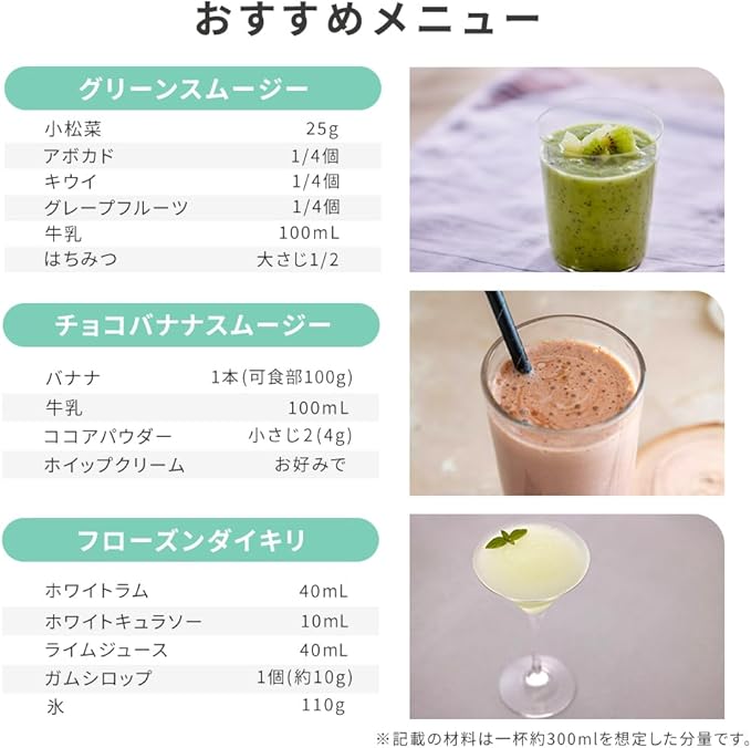 定番スムージーからフローズンドリンク、シェイクも作れます。