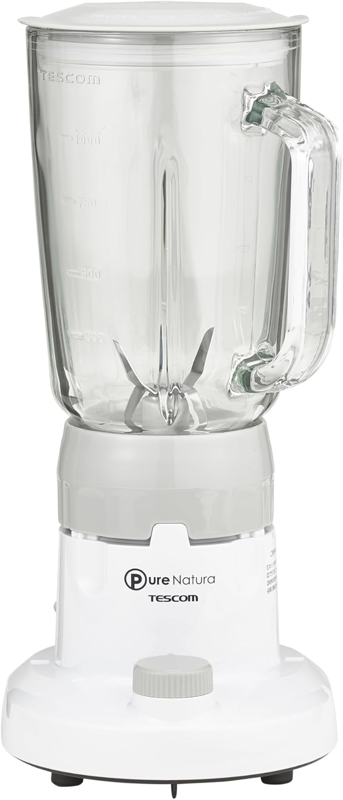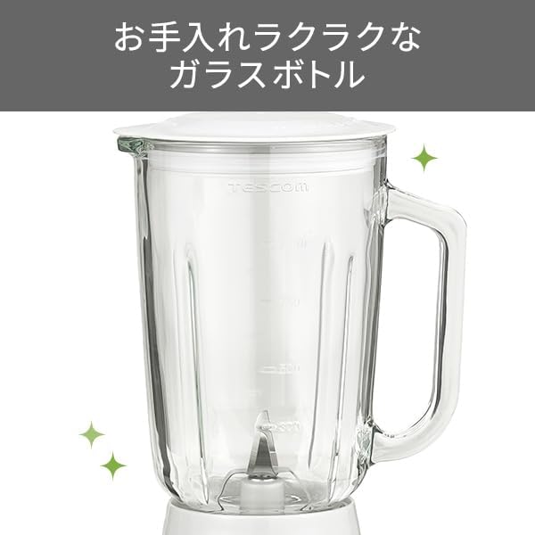 テスコム ミキサー ジュースミキサー 1000ml <冷蔵庫の角氷を細かく砕ける大型刃> ガラスボトル コンパクト収納 ラク抜きプラグ ホワイト TMX20A-W