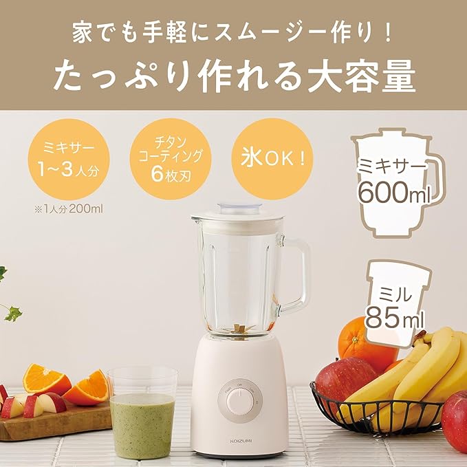 コイズミ ミキサー ミルミキサー 600ml ガラスジャー ホワイト KMZ-0601/W