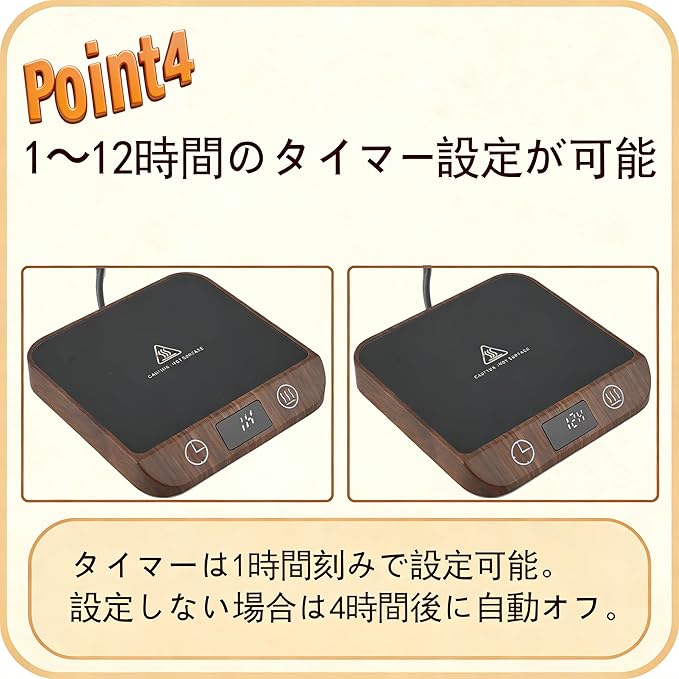 【安心の自動OFF機能|つけっぱなし防止】タイマー設定が可能で、指定時間後に自動で電源オフ。タイマー未設定でも約4時間後に自動OFFするため、在宅ワークや長時間使用でも安心してお使いいただけます。
