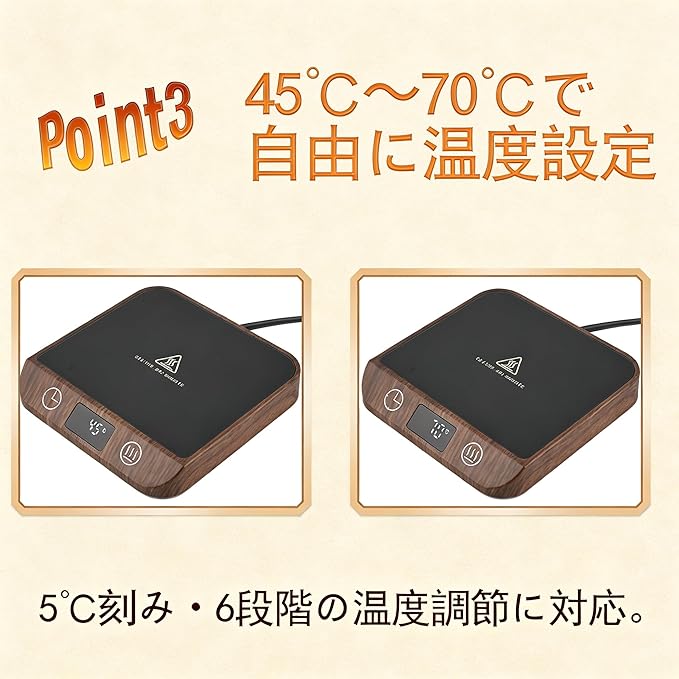 保温プレート カップウォーマー コースター 6段階温度調節 最大70℃ マグカップ・コーヒーカップ対応 デスクワーク便利グッズ ミルクウォーマー 誕生日プレゼントに最適