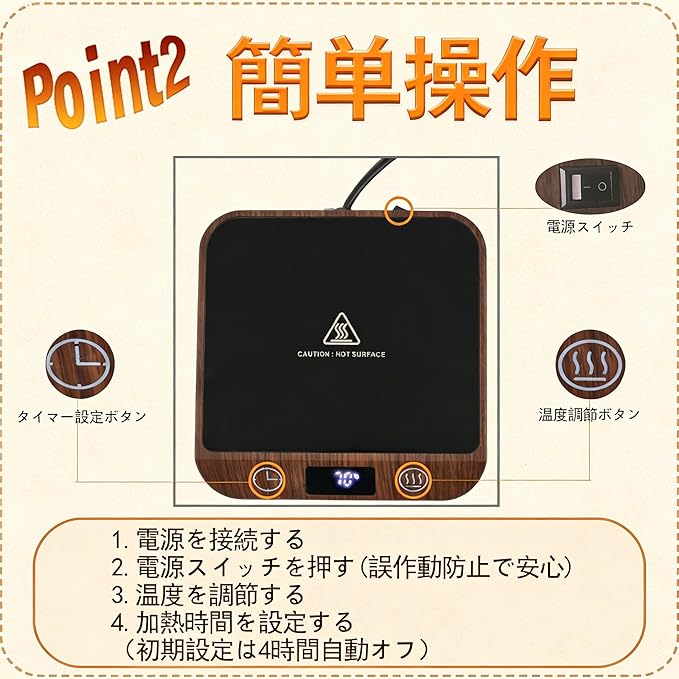 【飲み頃温度をキープ|保温専用設計】コーヒーや紅茶がすぐ冷めてしまう悩みを解消。45~70℃の範囲で温度を一定に保ち、最後の一口まで美味しさをキープします。※本製品は保温専用であり、加熱・沸騰・調理用途には対応していません。